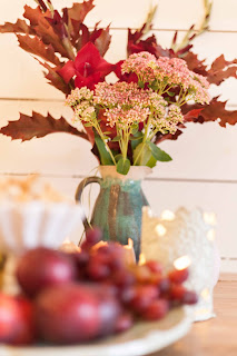 På bordet: en kavlad lykta med mönster från en virkad duk, skål på fot som ser ut som en pokal, fågelbur + ljuslykta med sälar (fast det skulle se ut som fåglar..) och en blombukett som jag fått av Sebe i rätt höstkulör. Snart till Örebro och frukostmöte med Andreas på Bullvivan.God onsdag!